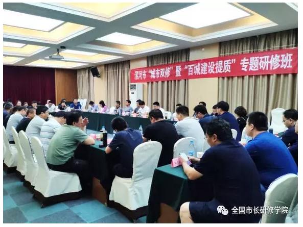 为学习城市双修的先进理念与经验做法,根据漯河市委组织部、漯河市城乡规划局的要求,本期班安排了新加坡宜居城市建设经验、城市滨水景观规划与设计、城市“双修”理念与实践、西安市城市设计的理念与实践、生态城市与海绵城市建设、乡村旅游发展模式与规划设计等6讲专题讲座,邀请了国内该领域权威专家为学员授课,学员对课程内容评价很高,与授课老师交流热烈。