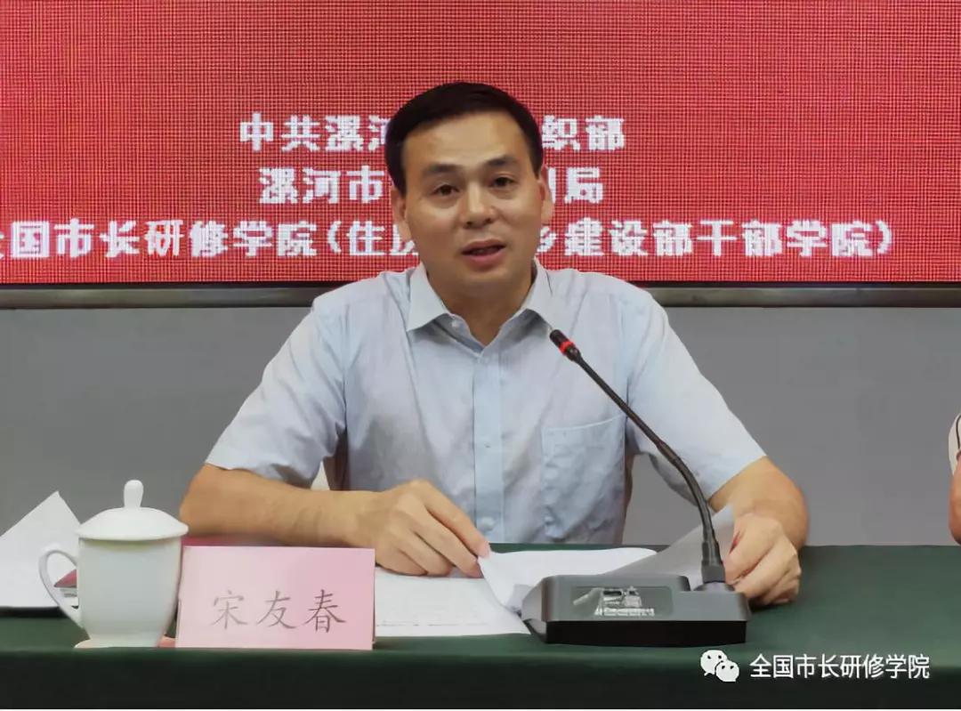 为深入贯彻习近平新时代中国特色社会主义思想和党的十九大精神、中央城市工作会议精神,落实《关于加强生态修复城市修补工作的指导意见》等重要文件指示,不断提升城市“双修”与城市设计水平,提升人居生活环境品质,由漯河市委组织部、漯河市城乡规划局委托全国市长研修学院(住房和城乡建设部干部学院)主办的漯河市“城市双修”暨“百城建设提质”专题研修班于9月2日至6日在城市“双修”试点城市西安市举办。学院副院长兼党委副书记宋友春,漯河市城乡规划局党组书记、局长陈兴和出席开班式并讲话,漯河市住建委党组书记、主任王涛宣读学员管理规定,学院城乡规划与村镇建设培训部副主任刘悦宣布班委名单,漯河市人才办副主任孙洪义主持开班式。