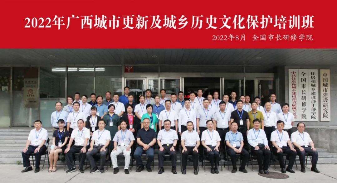 近日,由中共广西壮族自治区委员会组织部委托自治区住房和城乡建设厅主办,由全国市长研修学院承办的“2022年广西城市更新及城乡历史文化保护培训班”在北京成功举办。自治区20余个市县、10余个省直有关单位、10余个省属国有企业负责人,共50名学员参加了学习培训。