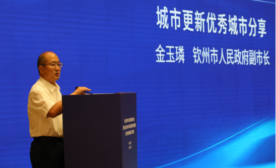在城市更新地方经验分享环节,各地领导分享了城市更新工作的经验及下一步主要工作。其中,钦州市人民政府副市长金玉璘介绍,钦州市通过精准规划,打造品质钦州;精心修缮、凸显人文钦州;精细旧改、凸显烟火钦州三个方面,并且介绍了钦州市在城市更新工作中的体会与成就。