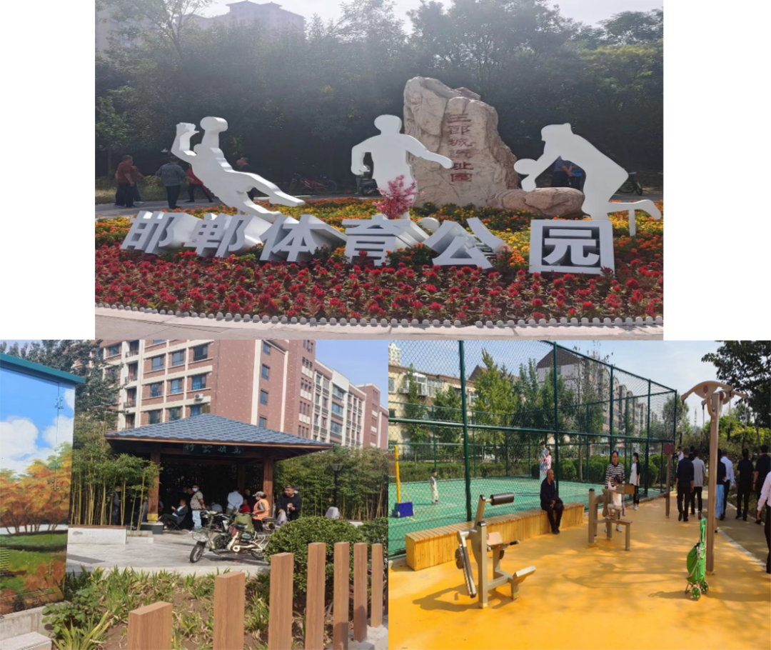 调研组参观考察了邯郸市的街角公园、口袋公园、体育公园等城市化配套建设。邯郸市以打造绿色生态城市为契机,整治提升后的街角公园、口袋公园、体育公园、街区等城市面貌焕然一新。通过数字化功能的植入,以邯郸市特色为底色,以“青山绿水”为主线,集当地人文自然美景和现代都市便捷生活于一体的新城市公园,吸引了周边众多市民,重构了市民健身人群以及其生活状态,真正打开市民在家门口有景看、有康养、有乐趣的现代化城市居民生动局面。