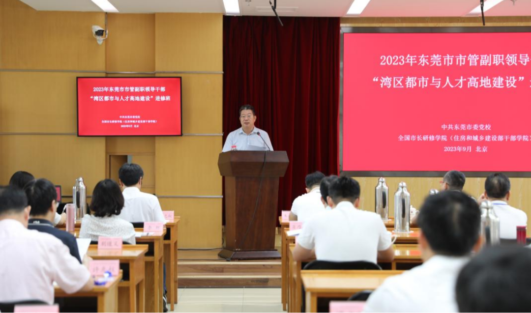 9月18日至22日,东莞市市管副职领导干部“湾区都市与人才高地建设”进修班在全国市长研修学院成功举办。学院副院长陶建明出席开班式,介绍了学院的基本情况、本期进修班的教学安排,并对进修班提出了有关纪律要求。