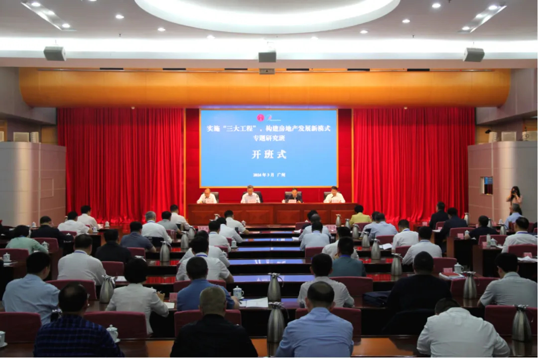 3月25日,由中央组织部、住房城乡建设部主办,全国市长研修学院承办的“实施‘三大工程’,构建房地产发展新模式专题研究班”在广东省委党校开班。住房城乡建设部住房保障司司长曹金彪、人事司副司长崔振林、全国市长研修学院党委书记全河,广东省住房和城乡建设厅党组书记、厅长张勇出席开班式。张勇同志致辞,崔振林同志作开班动员,全河同志主持开班式。