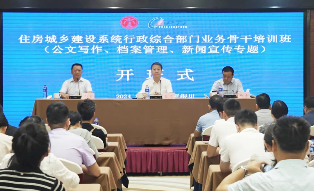 2024年8月14日至16日,由全国市长研修学院(住房和城乡建设部干部学院)举办的“住房城乡建设系统行政综合部门业务骨干培训班(公文写作、档案管理、新闻宣传专题) ”在银川市成功举办。学院党委书记全河,宁夏回族自治区住房和城乡建设厅总经济师杨普出席开班式。学院城市管理执法培训部主任尹必豪主持开班式。