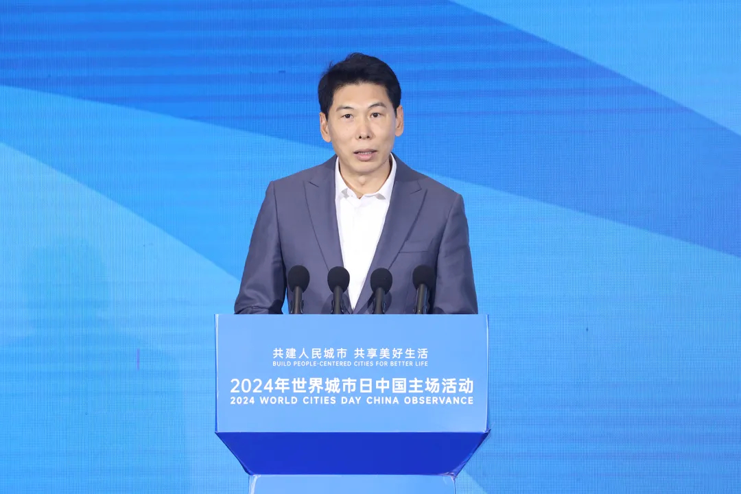 中国建设科技有限公司党委委员、副总经理刘志鸿以“迈向绿色宜居的新未来,绿色低碳好房子建设的实践”为主题作交流发言。