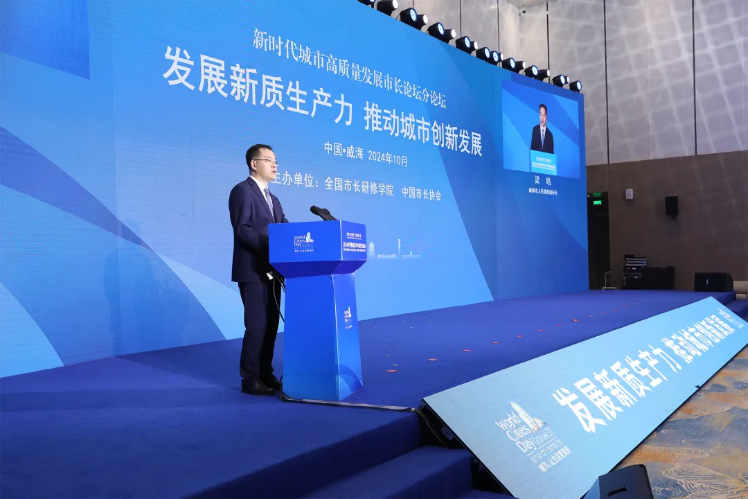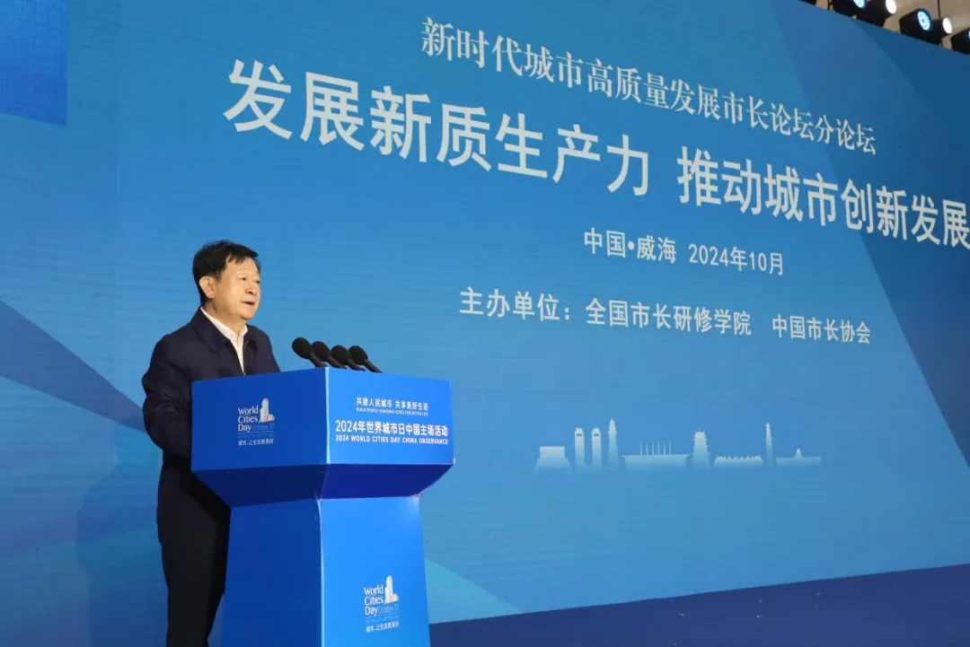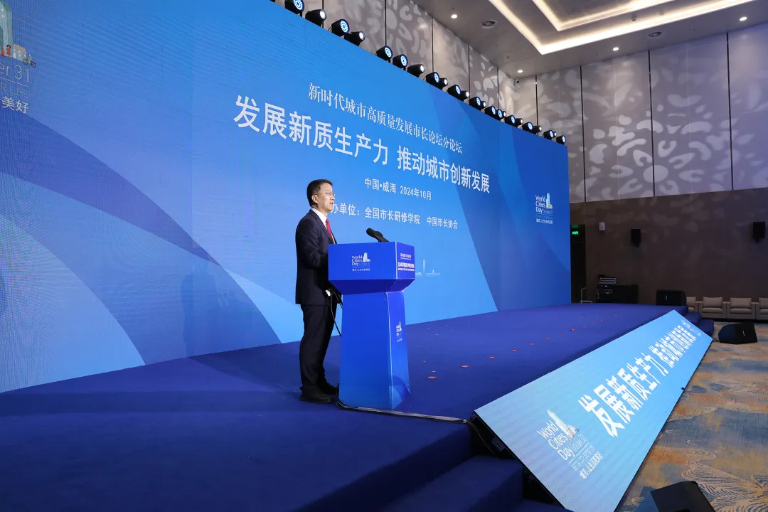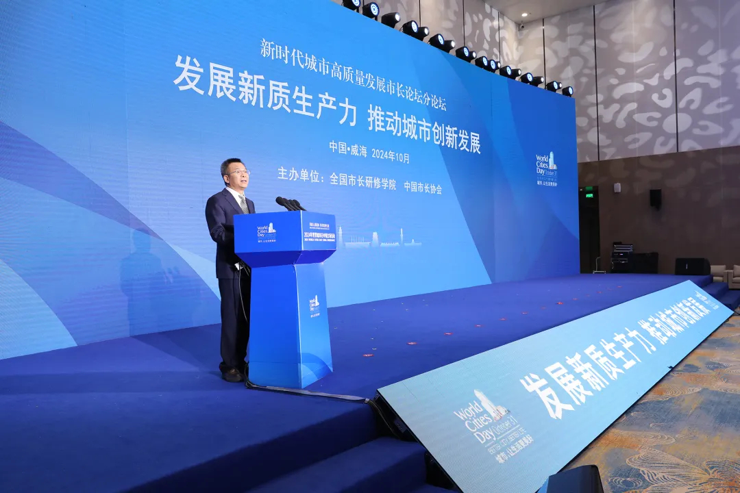 10月27日,新时代城市高质量发展市长论坛分论坛“发展新质生产力 推动城市创新发展”在山东威海举行。住房城乡建设部党组成员、副部长姜万荣出席活动并讲话。威海市人民政府副市长梁皓致辞。