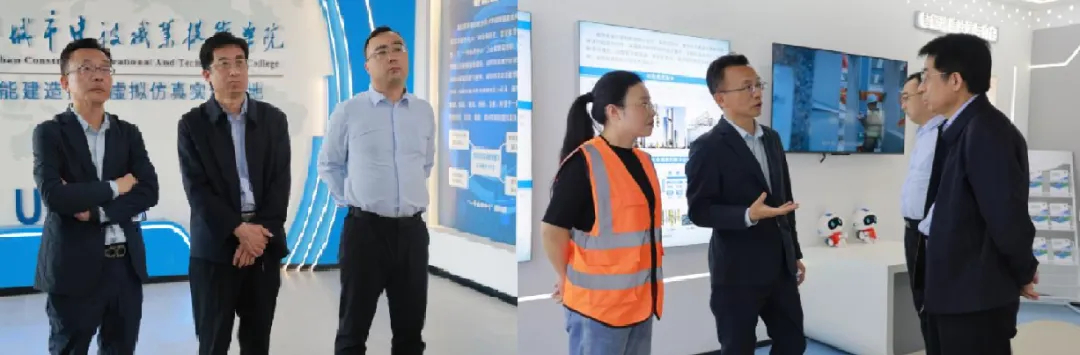 在湖北城市建设职业技术学院,调研组参观了湖北建院虚拟仿真实训基地、国家建筑实训基地、装配式实训基地、创新创业中心等,深入了解了湖北建院在教学改革、产教融合、培训服务等方面取得的成果。
