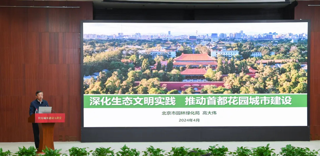 4月24日,住房城乡建设大讲堂第十期开讲,北京市园林绿化局党组书记、局长高大伟受邀以“深化生态文明实践 推动首都花园城市建设”为题作专题讲座。部党组书记、部长倪虹,驻部纪检监察组组长、部党组成员宋寒松,部党组成员、副部长秦海翔,部总工程师江小群出席,部党组成员、副部长王晖主持。