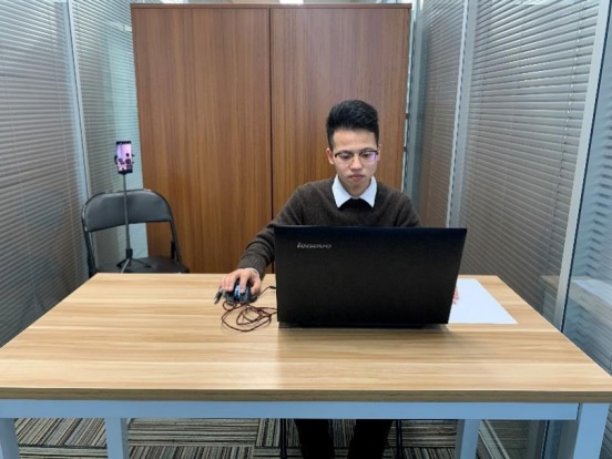 (4)考生应参照说明书中《智考云在线考试规范》的要求,调整好摄像头的拍摄角度和身体坐姿,并确保上半身能够在电脑端的摄像范围中,拍摄角度应避免逆光。