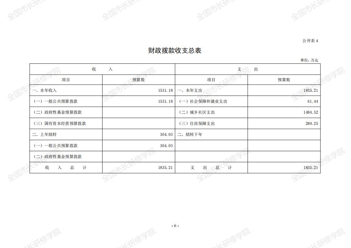 全国市长研修学院2025年预算公开