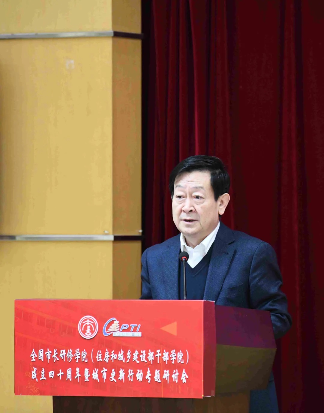 12月5日,“全国市长研修学院(住房和城乡建设部干部学院)成立四十周年暨城市更新行动专题研讨会”在京召开。住房和城乡建设部副部长姜万荣出席会议并致辞,中央组织部干部教育局负责同志出席会议并致辞,中国科协原党组副书记、副主席、书记处书记,中国老科学技术工作者协会常务副会长齐让出席会议。吴良镛院士,张锦秋院士,河南省副省长武国定,甘肃省副省长、陇南市委书记孙雪涛以贺信或视频方式致辞。山东省济宁市委书记傅明先、吉林省住房和城乡建设厅厅长孙众志分别代表市长、厅长学员在会上致辞。山东省住房和城乡建设厅党组书记李力、青海省住房和城乡建设厅厅长王发昌、吉林省白城市市长李明伟、河北雄安新区管委会副主任傅首清等学员到会或以贺信等多种方式表示祝贺。学院党委书记兼副院长宋友春介绍了学院四十年的发展历程。